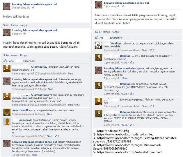 1- https://www.facebook.com/ pages/ Leaving-Islam-apostates-spe ak-out/153879201396986