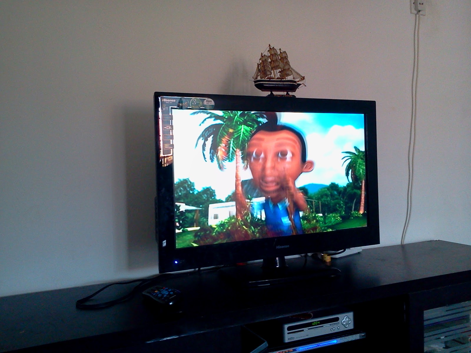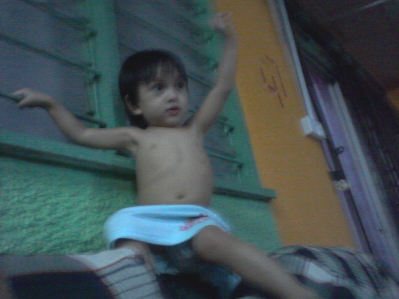 Malam tadi, lepas kes Aina menangis macam kena histeria tuh, PU lepak lepak tengok TV, incik hubby letak Auni atas badan PU. PU marah jugak lah sebab mengganggu konsentrasi nak tengok tv..hehehehe...