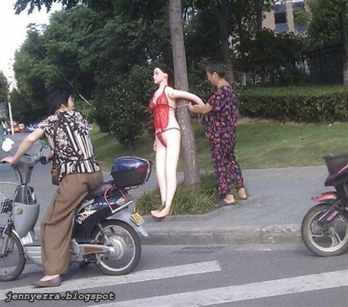 Tengoklah kecumilan kaki dia mengenakan stokin saya yang besar dan agak tak sepadan dengan kaki dia...