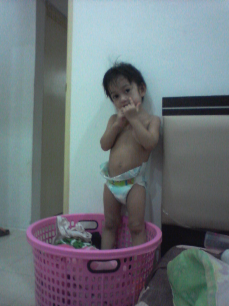 Yang penting depan kamera tetap kena pose walaupun hanya pakai dypers saja...Dypers nih hanya digunakan time tidur saja...Nama pun dypers murah kan...Gelebeh sana sini....