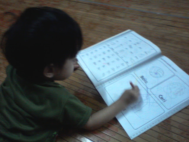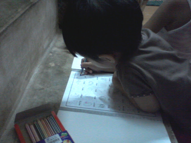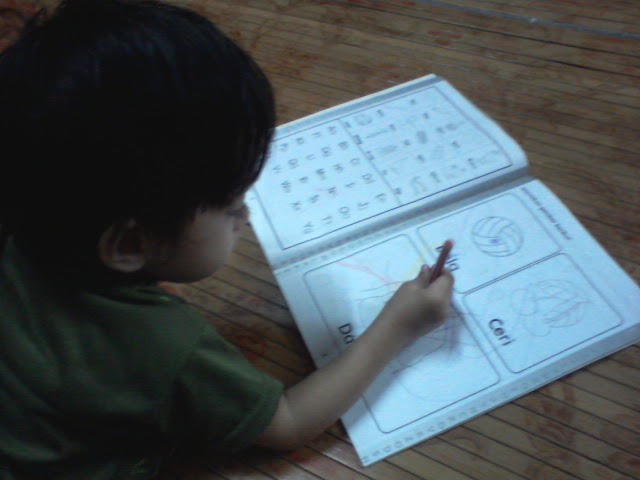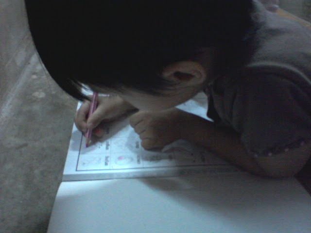 Balik jer rumah, terus dua beradik nih tak sabar nak kaler buku masing masing....Macam mana ghoman buku tuh diorang kaler tak payah tanya lah. Tak sanggup dah tengok buku tuh...hehehe...Takpe takpe janji saya dah buat anak anak happy..