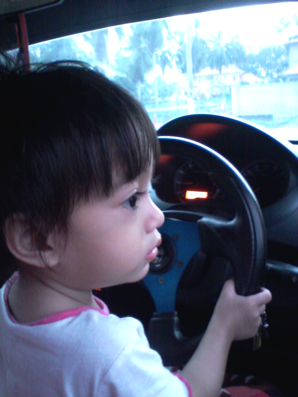 So, bila dia dah duduk kat pangku saya tuh kenalah drive seperlahan yang mungkin. memang pergerakan terbatas lah kan....