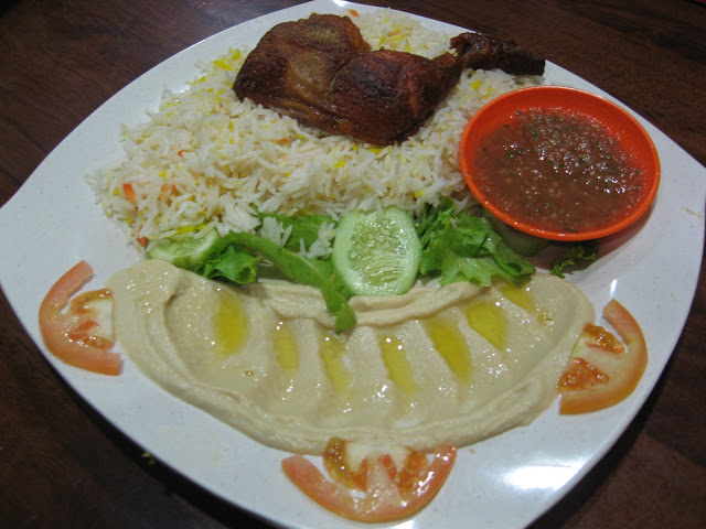 Oklah nak cerita pasal makan makan pagi Jummat nih....Malam Rabu lepas, officemate saya yang sama sama kursus dengan saya ajak keluar mkan Nasi Arab. Kitorang pergi berenam, 3 lelaki 3 perempuan....Kawan saya nih dah biasa makan dekat restoran nasi arab nih, dia memang syorkan kalau nak makan nasi arab, datang kat restoran nih memang terbaik....Restoran tuh namanya Restoran Half Moon yang terletak kat Serdang...