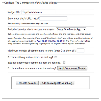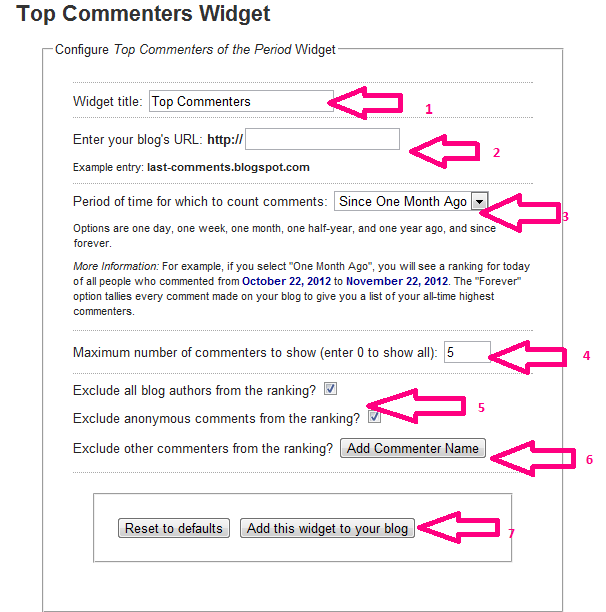 f) Kalau korang ada lagi blog yang korang tak nak masuk dalam list top commenter nih just klik Add Commenter Name..Kalau takde proceed step seterusnya...