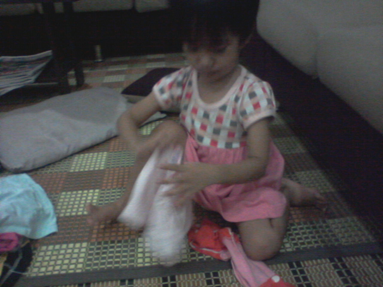 So, sampai kat rumah semalam macam biasalah Aina dan Auni main main kat rumah...Saya pulak leka main gama zombie...Masa dah selesai main gama saya dengar Auni sebut "HABIS...". Saya pandang Auni, macam tak percaya aje dia cakap tuh. Lepas tuh saya tanya incik hubby, betul ke adik cakap habis. Dia jawab a'ah....Lahai, rasa rugi aje saya tak dapat dengar Auni sebut perkataan tuh mula mula...Confirm saya over eksited sebab jadi orang pertama dengar dia sebut perkataan tuh....