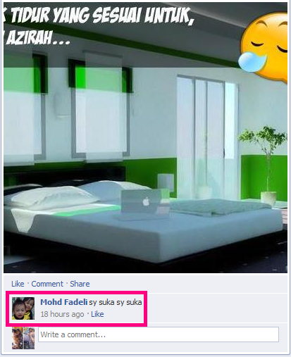 Tengok tuh siap komen lagi....Menunjukkan betapa sukanya dia dengan bilik angan angan nih..hehehe