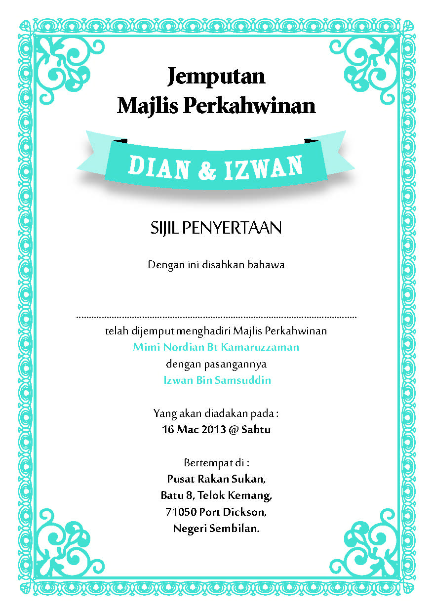Contoh kad kahwin adik saya