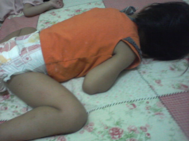 Nih lah gaya tidur Aina dan Auni bila dah keletihan....Patutlah bilik yang tadi jadi haruk pikuk dengan sura diorang bermain lompat sana lompat sini tetiba jadi sunyi sepi..Rupa rupanya......T_T....Speechless i dibuatnya...hahahaha
