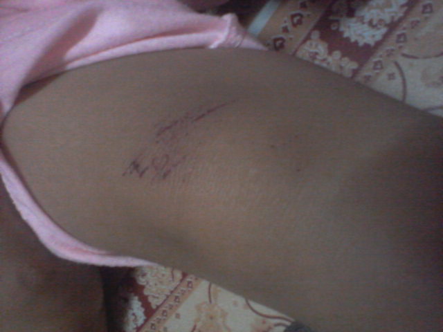 See, luka kat lutut Auni. Masa kejadian saya tengah tidur