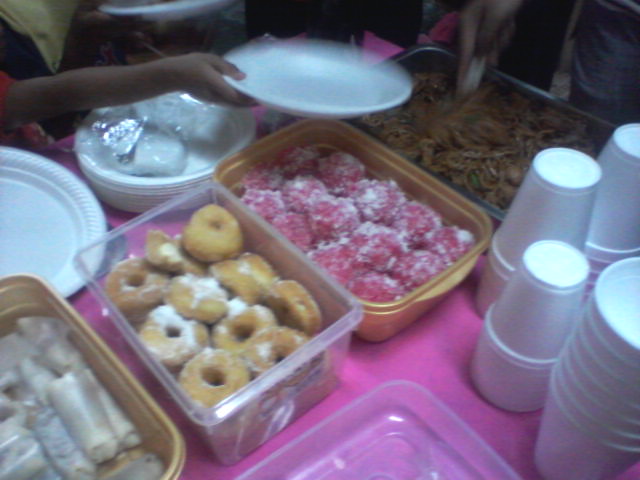 Antara menu yang ada ialah mee goreng basah, popia basah, donut dan apa entah nama kuih merah tuh...Saya panggil kuih sagu je..Tapi entah betul ke tak...