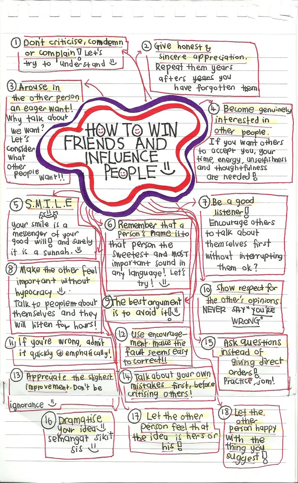 ReplyDeleteConclusion yg boleh dibuat based on mind map ni ialah:give others positive feedback and u'll get yours...so,kalau kita positive pd semua,InsyaAllah org akan respect kita n at da same time kita leh dpt attention drp org lain;-)