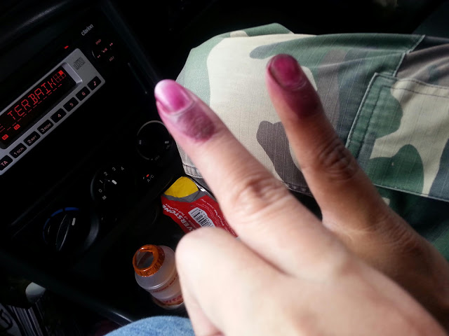 So, sebab tuhlah saya mengundi awal. Lagipun hari nih kan tentera dan polis dah mula mengundi. Bila incik hubby memgundi automatik saya kena mengundi sekalilah. Nama dah adakan...
