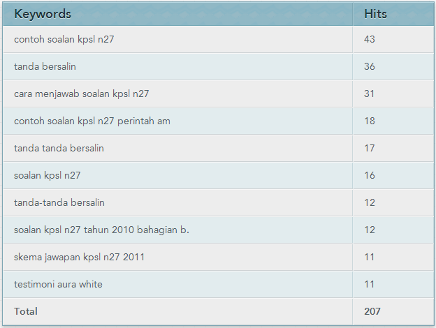 So, minggu lepas keywords berkaitan yang paling popular...Macam macam keywords calon calon peperiksaan cari kan...Good luck ye buat mereka yang sedang bertungkus lumus menjawab soklan peperiksaan....