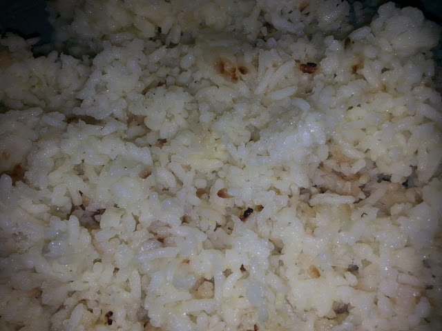 Sebenarnya nasi nih kaler kuning tapi tak tahulah bila snap gambar tak nampak kaler kuning tuh....Cara nak masak nasi nih senang aje tau....Mula mula rendam beras+serbuk kunyit. Agak agak dah beras tuh dah kuning masak macam biasa....Pastu ambik 2 ulas bawang kecik hiris hiriskan dan goreng....Agak agak nasi hampir masak masukkan bawang yang digoreng bersama dengan minyak yang digunakan untuk menggoreng bawang tadi.