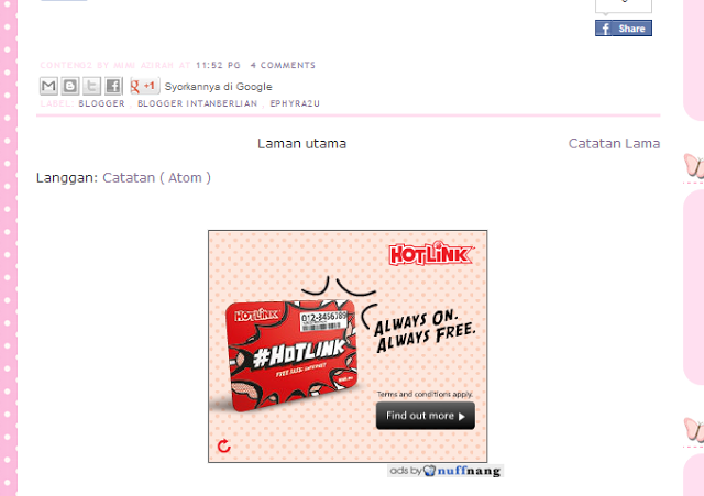 Alhamdulillah syukur...Terima kasih banyak banyak incik Nuffnang sebab sudi bagi saya iklan baru untuk blog saya..Sebelum nih ada dua cpuv/be saya yang dah metered...Pagi tadi check akaun Nuffnang ada satu iklan muncul..Bak kata pepatah PATAH TUMBUH HILANG BERGANTI kannn....