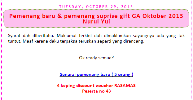 Nanti tengahari saya keluarkan senarai nama peserta mini ga saya semalam ye..Alhamdulillah ramai yang join...Terima kasih kepada mereka yang dah join...