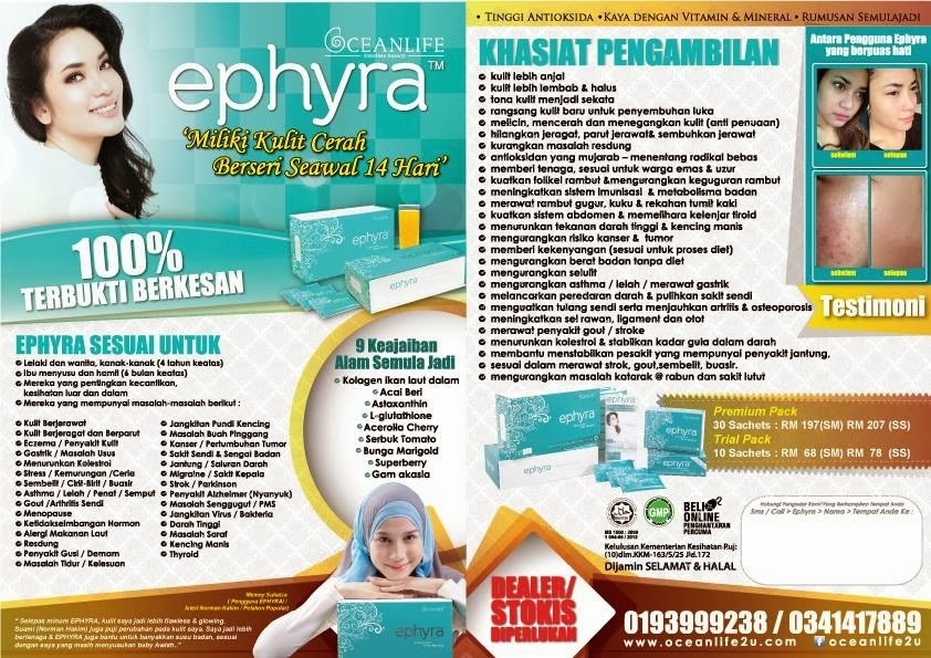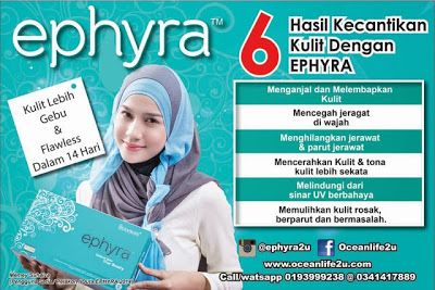 Jika anda ada masalah kulit kusam, kedutan, jerawat, jeragat, sakit sendi, tumit merekah, kulit kering, rambut gugur dan sebagainya, jangan ketinggalan untuk dapatkan penyelesaian anda dengan Ephyra. Jom lihat apakah kelebihannya...