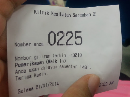 Sekarang nih tunggu turn dipanggil. Macam biasa kalau klinik kerajaan memang ramai orang...Nanti saya akan cerita servis KK Port Dikcson dan KK Seremban 2...Dua dua under gov dan dua dua bawah kementerian yang sama. But servisssss sangat jauh beza...