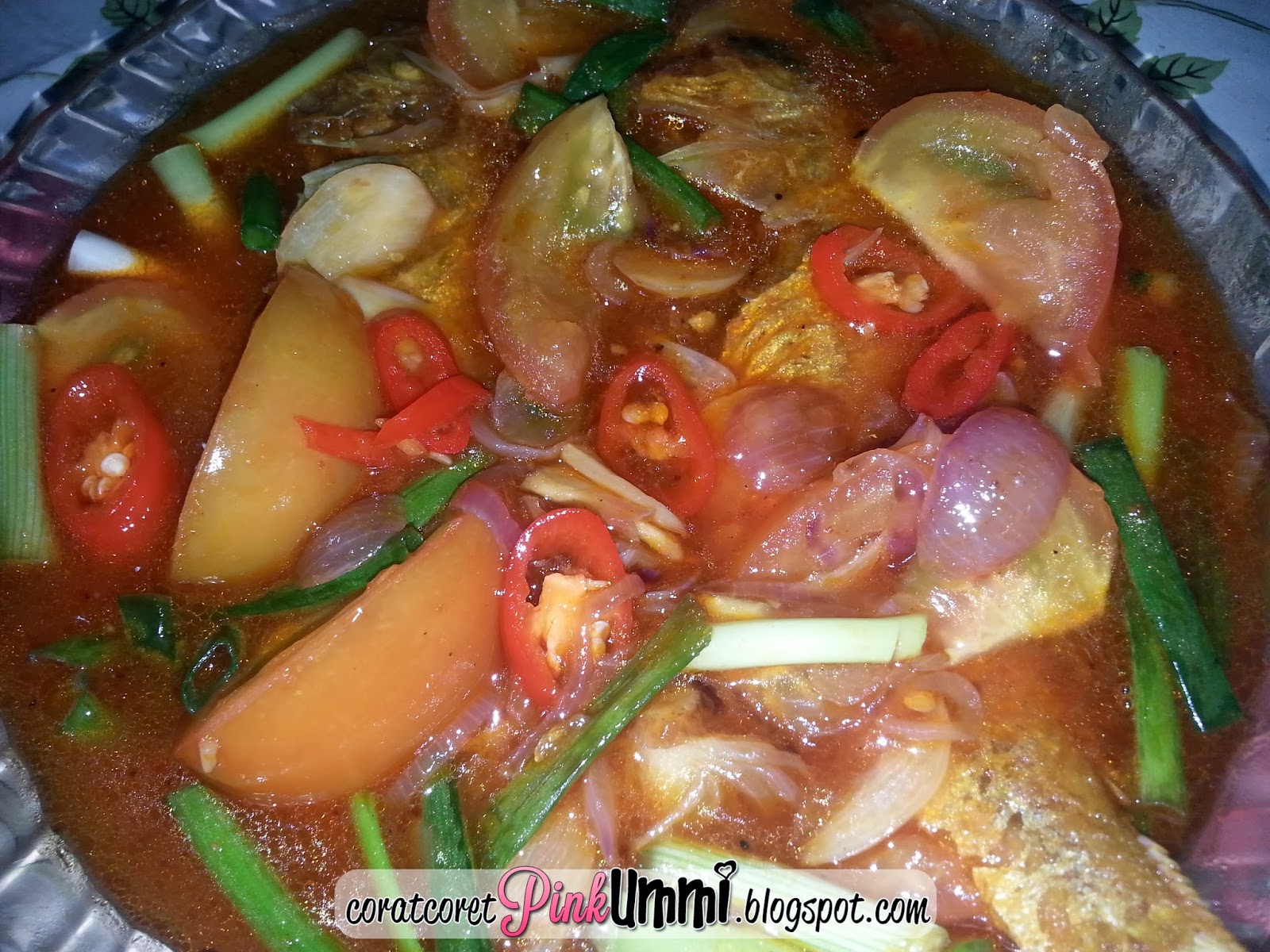 Cara-caranya : 2 ekor ikan kerisi (ikut selera korang nak bubuh berapa ekor) ratakan dengan serbuk kunyit, garam...Goreng sampai masak pastu angkat...Pastu hiris 4 biji bawang merah, 3 ulas bawang putih, 1 inci halia. Tumis sampai garing..Lepas tuh masukkan 4 sudu sos tomato, 3 sudu sos cili dan 1/2 cawan air (kalau nak bubuh sos dan air lebih pun takpe ikut selera masing masing). Biarkan sampai kuah tuh mengelegak korang bubuh sedikit garam dan gula...Pastu masukkan ikan yang digoreng tadi...Last sekali masukkan tomato (dibelah 8), lada masak (dihiris) dan daun bawang yang dihiris2 panjang..Masak seminit dua..Dah boleh hidang dan makan..