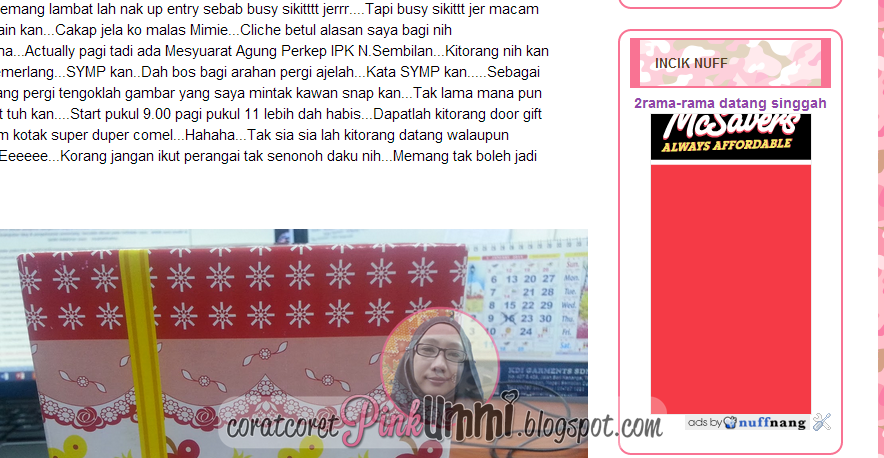 Dah bulan 3 nih jadual saya penuh busy dengan program..Tak tahulah time tuh ada masa ke tak nak beronggeng dengan blog...Lagipun boleh tak cakap saya merajuk nak up entry dekat blog sebab iklan Nuffnang yang macam hidup segam mati tak mahu??hahaha...