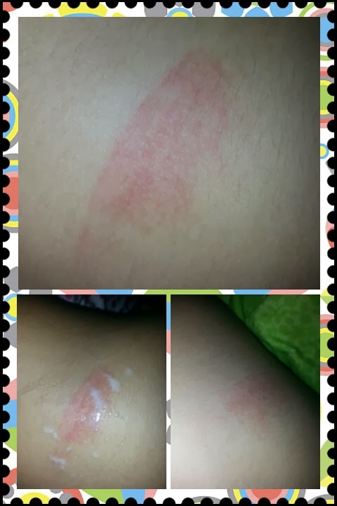 Gambar atas tuh kesan lecet dan merah...Gambar bawah sebelah kiri saya sapu bedak sejuk...Gambar last tuh pagi tadi saya snap....