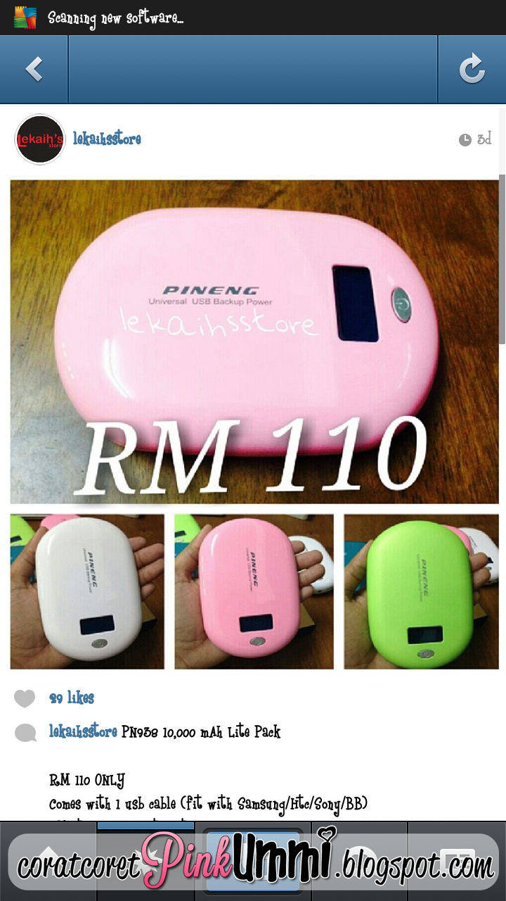 Nih lah rupa powerbank Pineng PINKKKKKK yang bakal menjadi milik saya...hahaha...Tak sabar nak dapat powerbank nih nak kenen kenen kan dengan Note 2 Pink saya yang manja manja tuh..Kawan kawan yang nak beli powerbank boleh terjah instagram @lekaihsstore....