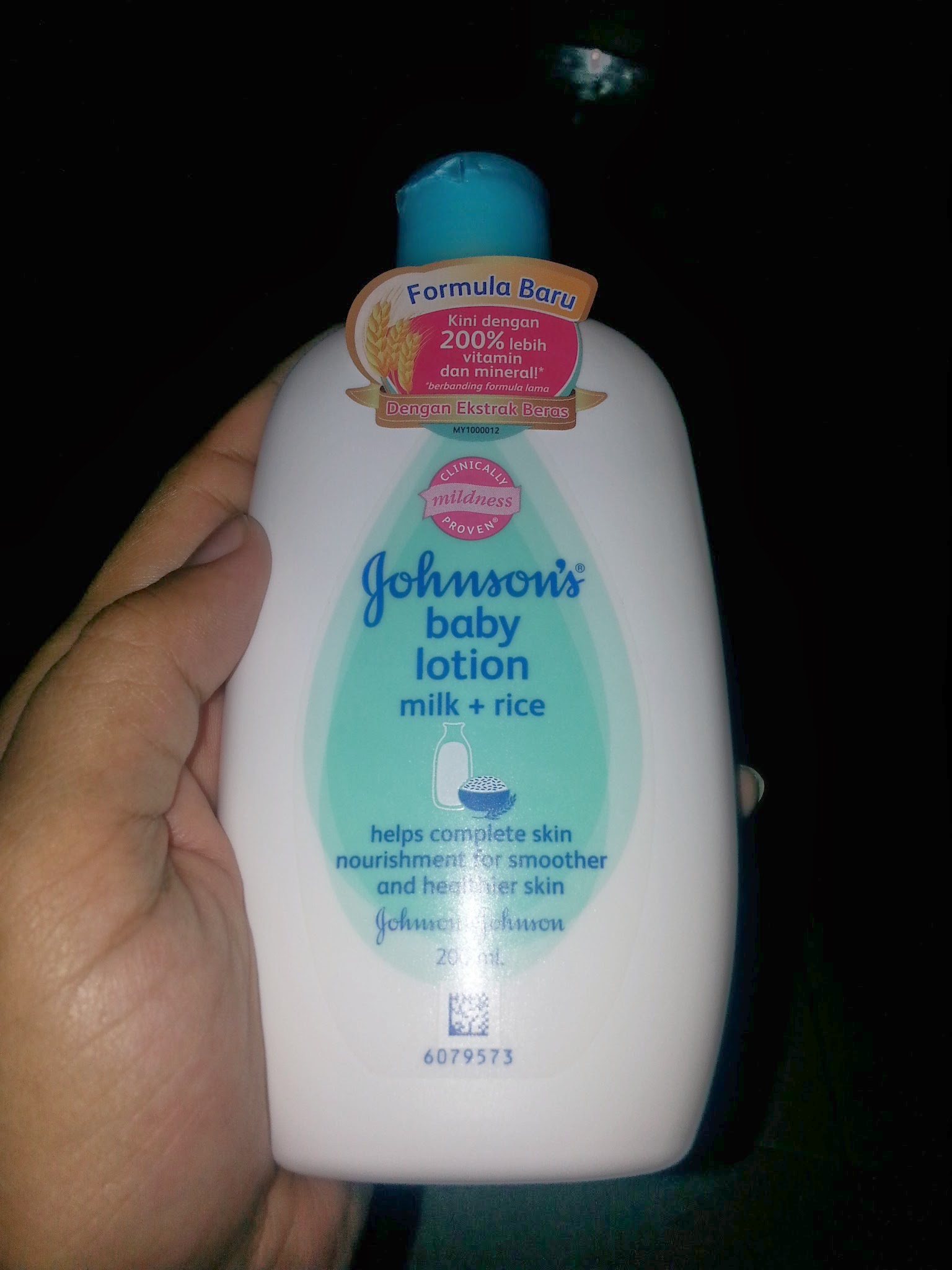 Masa kat kaunter bayaran tuh saya ternampak losyen losyen Johnson's..Satu persatu saya ambik dan tengok kandungan losyen..Yang mana ada paraben saya letak..Last last saya jumpa losyen milk + rice.
