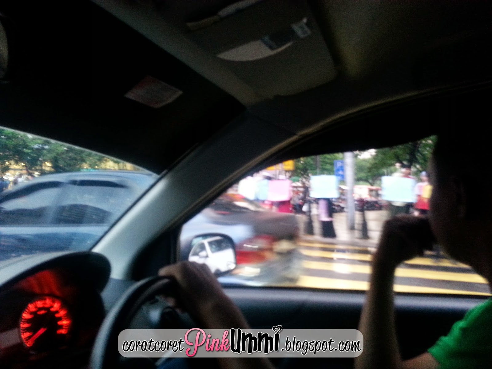 Masa dalam kereta, dah dengar bunyi motor2 dan kereta2 kat situ bunyikan hon masing masing. Saya duk fikir mesti ada hal nih sampai motor2 dan kereta2 hon. Memang jammed. Lepas tuh dari jauh, incik hubby bagitau ada demonstrasi..Saya nih duk terjenguk jenguk lah dari kereta tengok kat depan..Rupa rupanya demonstrasi tuh kat tepi jalan aje...Tak ganggu lalu lintas kat situ...Rupanya motor2 dan kereta2 yang hon tuh tanda sokongan pada demonstrasi tuh...