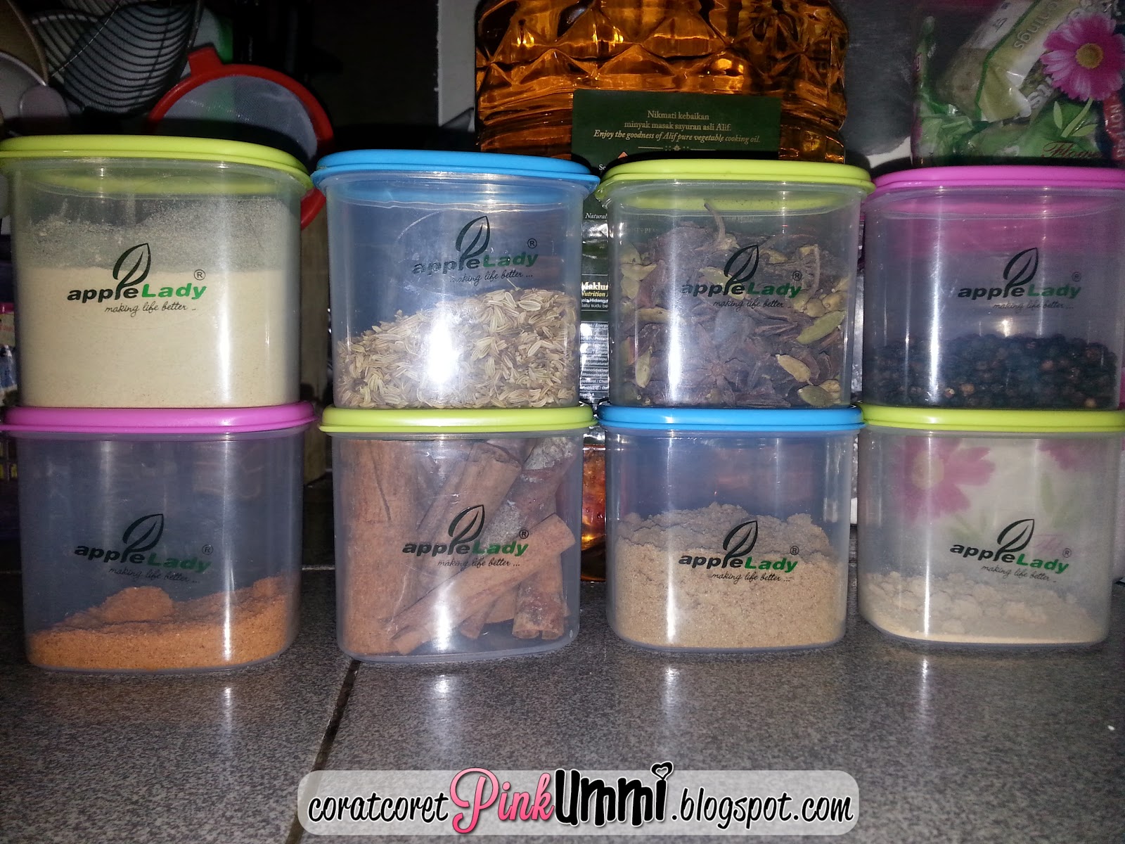 Malam semalam pergi beli barang dapur...Sambil sambil tuh mencari rempah ratus nak isi dalam bekas tipuware cap Apple Lady yang saya beli masa balik Melaka...Ada banyak lagi yang saya nak cari tau...Senang nak masak apa apa semua perencah ada...Perencah nasi goreng pun ada.