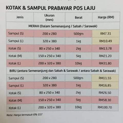 Mulai hari ini harga bagi kotak dan sampul prabayar poslaju dinaikkan. Nampaknya para peniaga terpaksa naikkan kadar postage kepada pelanggan.