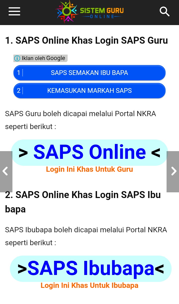 Bagi Mimi, dengan adanya sistem ini sangat memudahkan ibubapa untuk menyemak keputusan peperiksaan anak anak. Tak perlu lagi nak tunggu report card anak diedarkan. Sekarang ini, semua dihujung jari, mudah dan menjimatkan. Untuk mengetahui mengenai SAPS dengan lebih lanjut korang boleh klik ini [https://www.sistemguruonline.my/2017/03/login-saps.html]
