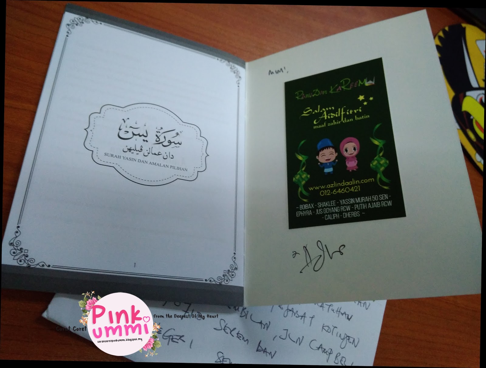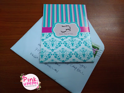 Kad Raya yang comel dan cute ditampal pada kulit buku yassin