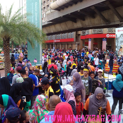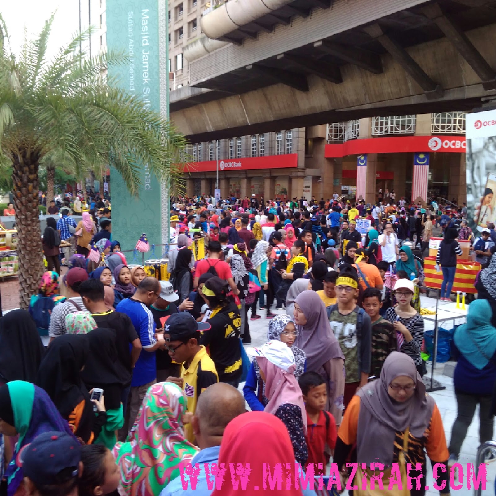 Lebih kurang pukul 6.30 pagi kitorang bertolak keluar dari rumah. Sampai Sg. Besi parking kereta di deretan kedai, lepas tu naik LRT dari Sg. besi turun ke Masjid Jamek. Dalam LRT memang penuh. Padat macam duduk dalam tin sardin. Kitorang sampai Masjid Jamek lebih kurang 7.50 pagi. Sampai saja kat stesen Masjid Jamek, jammed terus dengan orang ramai.
