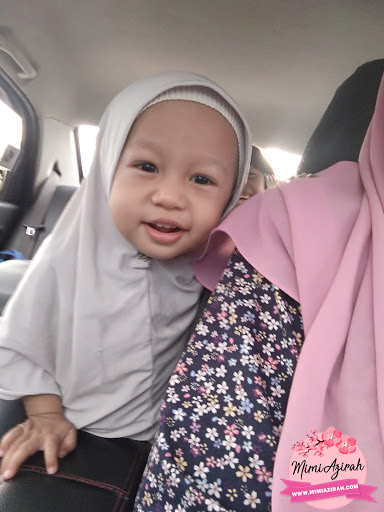 Masa ni Mimi sempat lah snap dua tiga gambar Adhwa time lampu merah. Tengoklah tu bukan main lagi dia senyum. Hantar gambar dia dekat abi di terkejut dibuatnya. Hahaha...Anak lelaki seorang sekali kena buli dengan kakak kakak dia nak marah pun tak jadi. Patutlah masa tengah drive Adhwa duk menjerit jerit marahkan kakak kakak dia. Rupanya dia kena "paksa" pakai tudung. Bila suruh buka tak bagi pula.