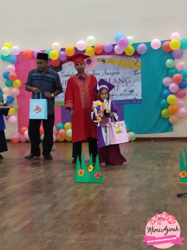 Semasa konvekesyen Auni dianugerahkan Pelajar Cemerlang bagi pelajar 6 Tahun. Alhamdulillah syukur sangat. Bila cikgu beritahu perkembangan Auni yang sangat bagus dan cemerlang dalam pelajaran Mimi speechless sebab tak sangka. Yelah, dekat rumah bila suruh belajar tak nak. Life Auni dekat rumah kartun, kartun, kartun. Tak nampak dia belajar. Bila suruh baca buku ada saja jawapan dia tau. Geram saja tengok. Kalau bosan tengok kartun, dia mula biat aktiviti yang bikin Ummi dia urut dada. Hahaha...