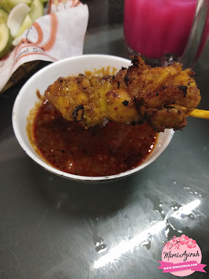 So, Mimi order Mee Rebus air sirap bandung, suami pula order satay ayam 15 cucuk air nescafe ais. Sementara tunggu order sampai, Mimi nampak meja depan order diorang dah sampai. Terus tengok satay diorang. Patutlah mahal rupanya satay besar. Bagi Mimi kira worth it la harga tu dengan satay kan. Cepat cepat beritahu suami no wonder lah satay mahal, besar rupanya.