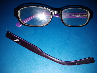 Cermin mata lama Mimi. Cuba pasang tapi tak boleh. Terkepak dah. Takkan nak buang sayangkan. Nanti nak salotape tepi yang patah tu. Boleh pakai untuk tengok tv dan memasak. Cermin mata baru pakai bila nak drive pergi kerja atau jalan jalan saja kan.