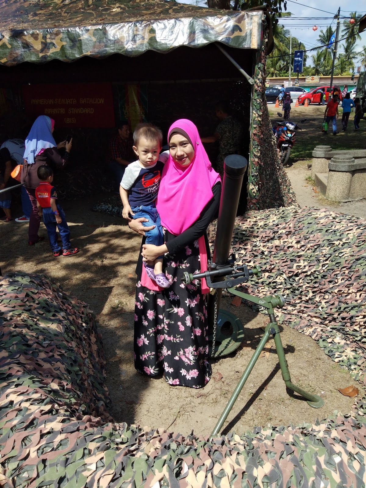 Sempat juga bergambar depan khemah 24 RAMD. Tak pasti pula Mimi apa nama senjata ni. Lupa pula nak tanya suami apa nama senjata ni.