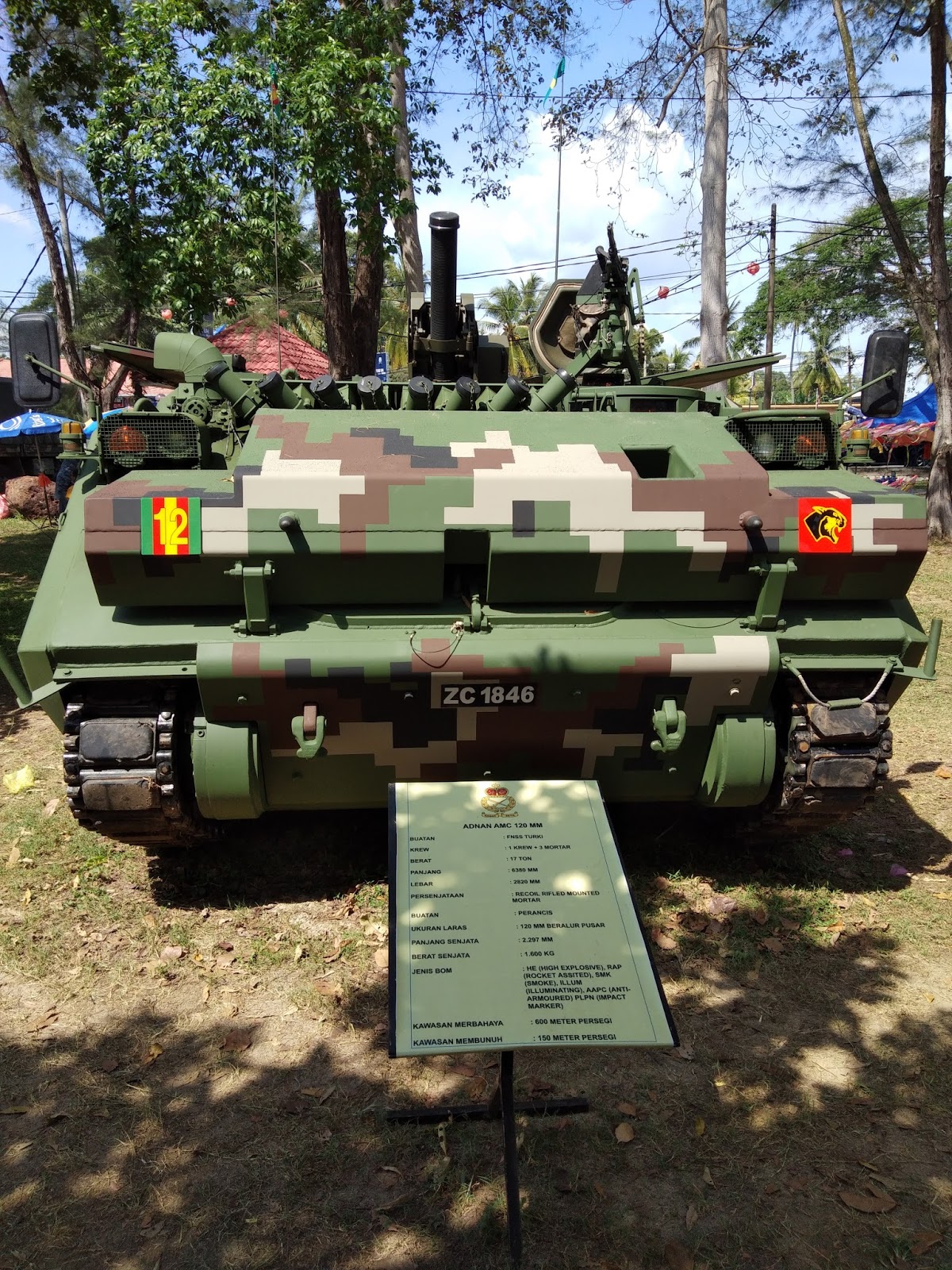 Kenderaan ni namanya ADNAN AMC 120 MM. Tak pasti fungsi kenderaan. Nak tanya tentera yang ada ni Mimi agak segan sikit. Walaupun suami tentera kita tanya dia, dia suruh tanya orang yang jaga. Memang taklah nak tanya.