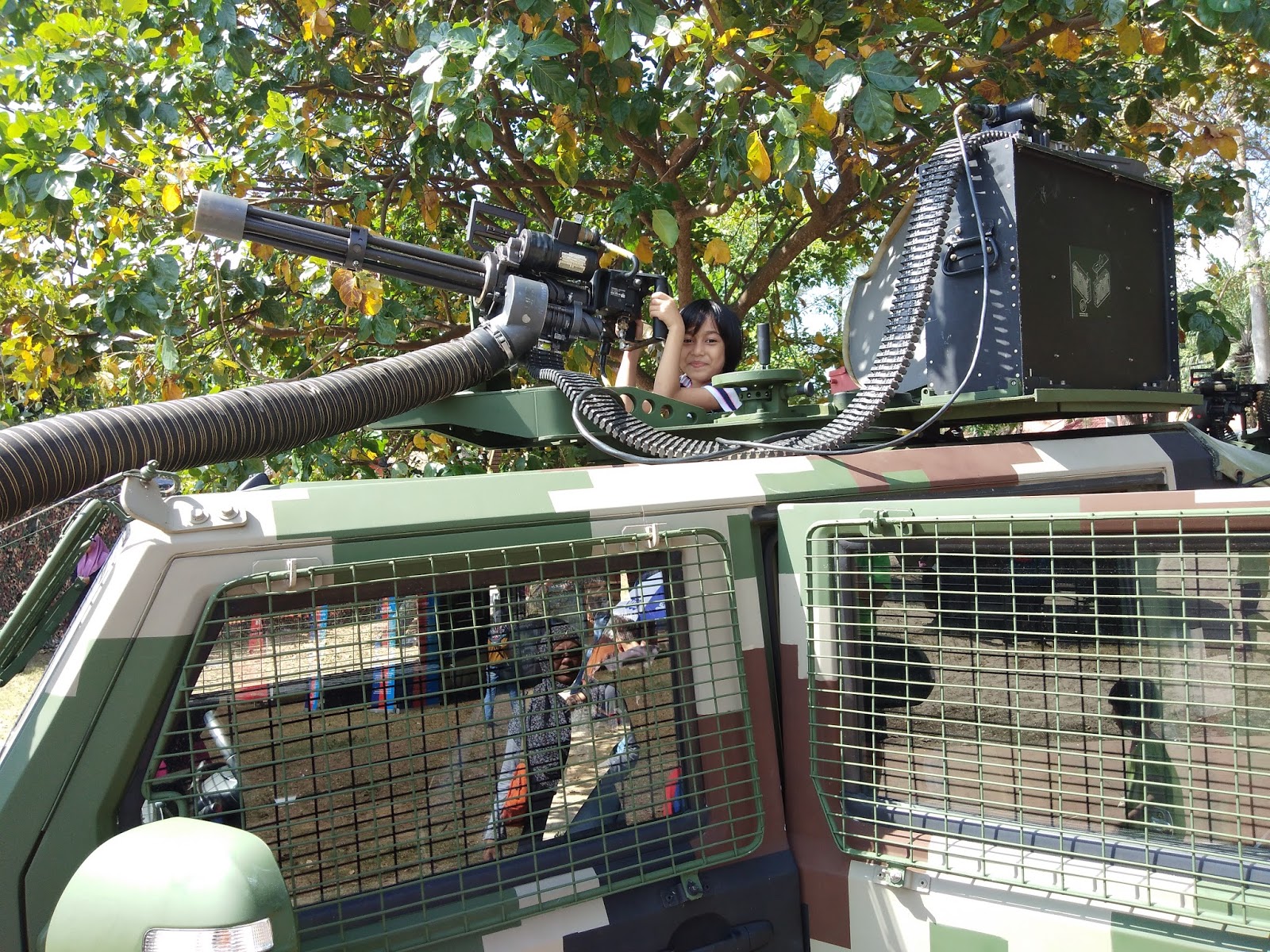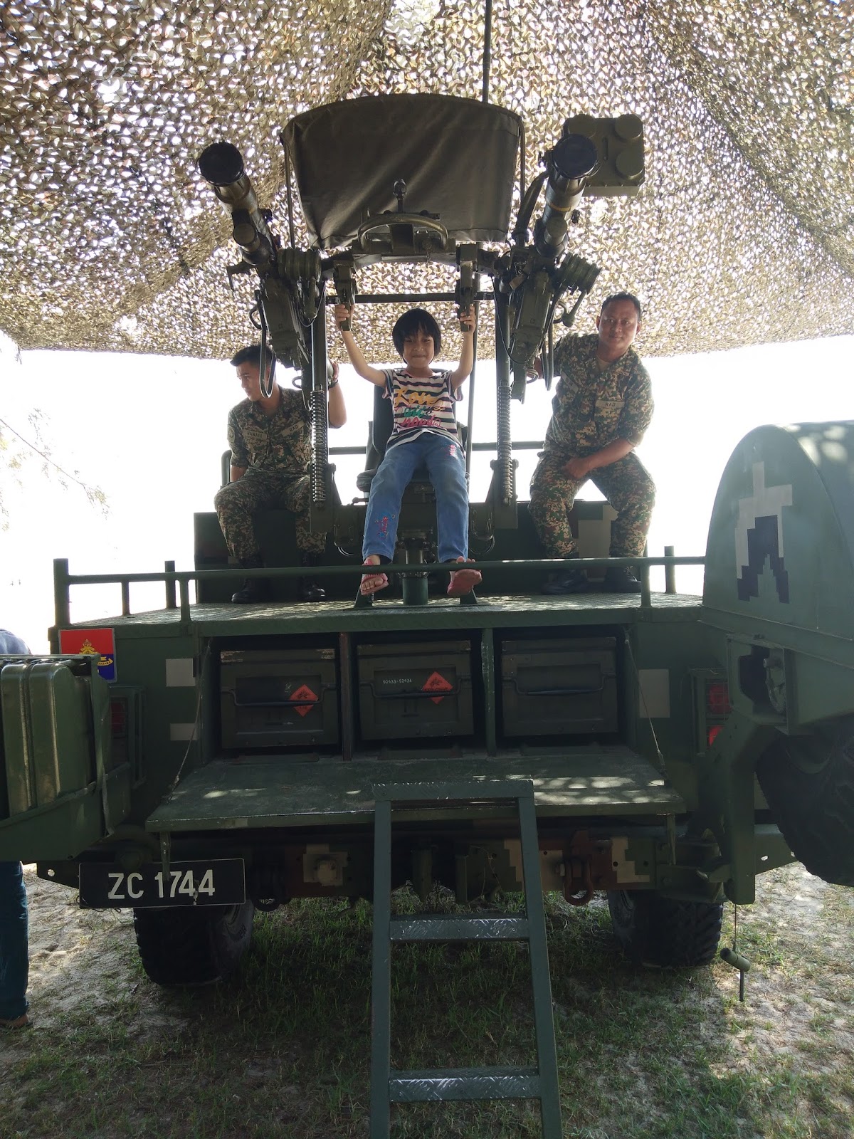 Mimi lupa apa nama kenderaan ni tapi kan Mimi sempat lagi berfikir macam mana keadaan tentera yang duduk dalam ni tak panas ke diorang dengan pakai baju loreng lagi kan? Tapi best jugalah walaupun menahan panas tapi Mimi tahu juga macam mana keadaan sebenar kenderaan tentera ni.