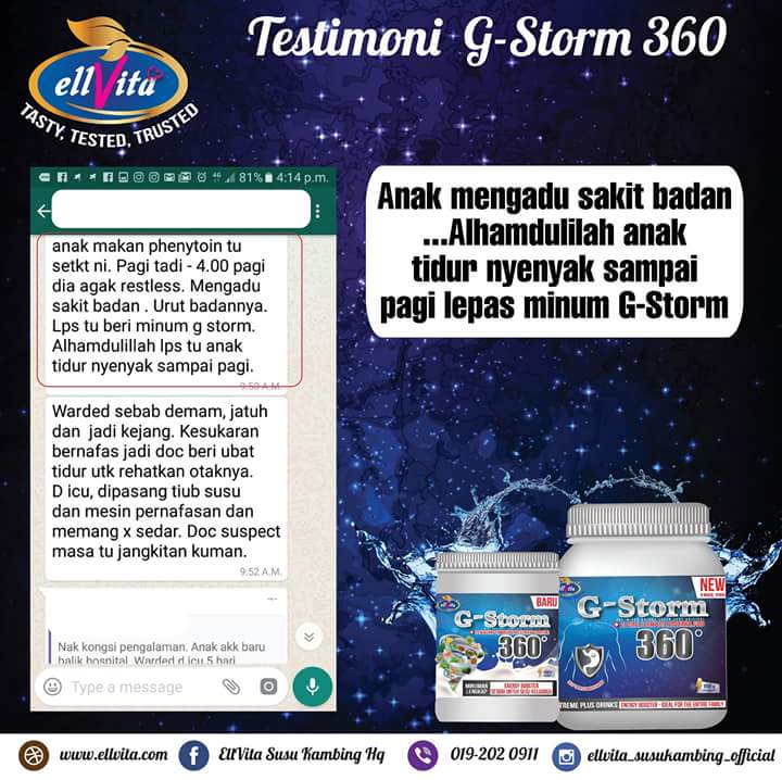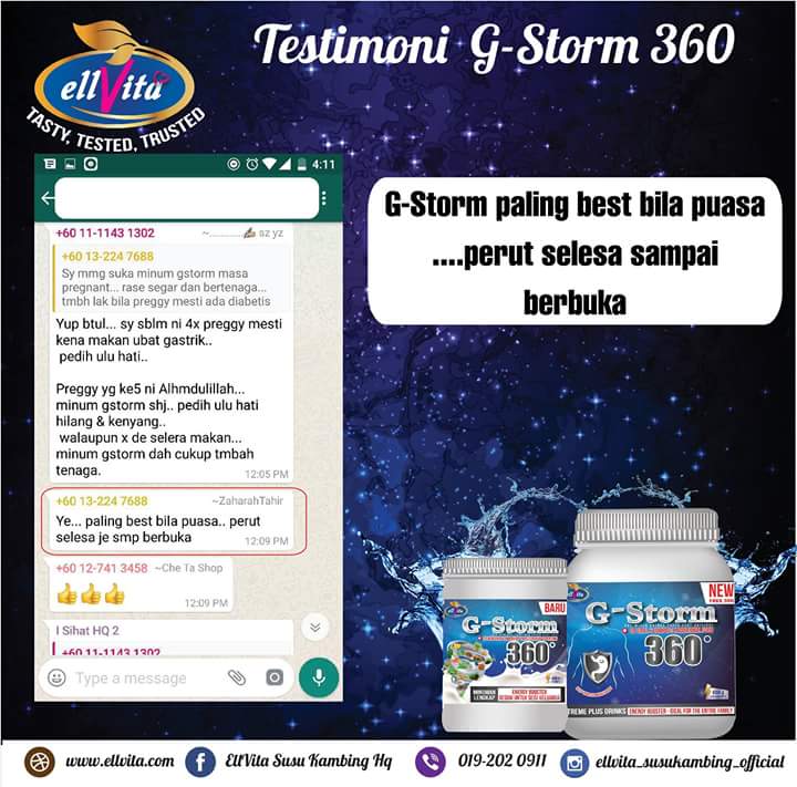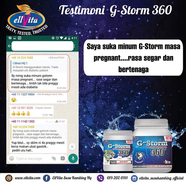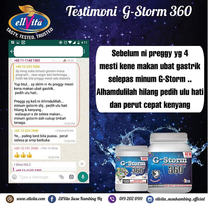 Gastrik lia dah okay lepas minum susu kambing G-Storm 360 ni. Sekali cuba dah terasa eh pedih perut dah hilang, Tak ambil dah ubat doktor. Memang kena dapatkan di pasaran segera.
