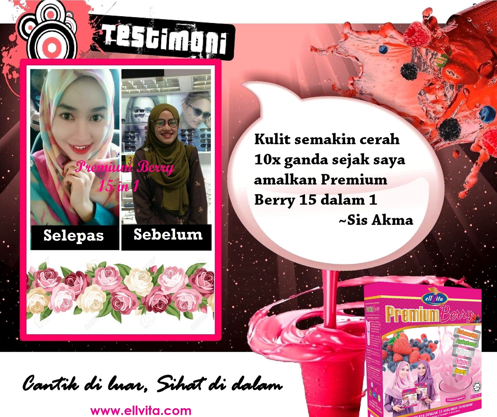 Teruja tak tengok testimoni pengguna lain? Tak rugi tau korang cuba produk ellVita ni. Dahlah sedap banyak pula khasiat dan kesan positif yang kita dapat. Tak rugi pun kita ketepikan sedikit wang untuk dapatkan produk terbaik ellVita ni. Dijamin korang akan berpuas hati dengan produk ELLVITA PREMIUM BERRY.