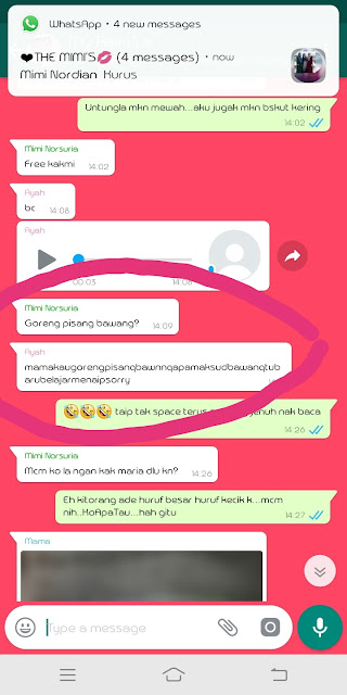 First whatsapp ayah dalam group family. Memang masa baca ni tergelak besar dah. Jenuh nak fahamkan apa dia taip.