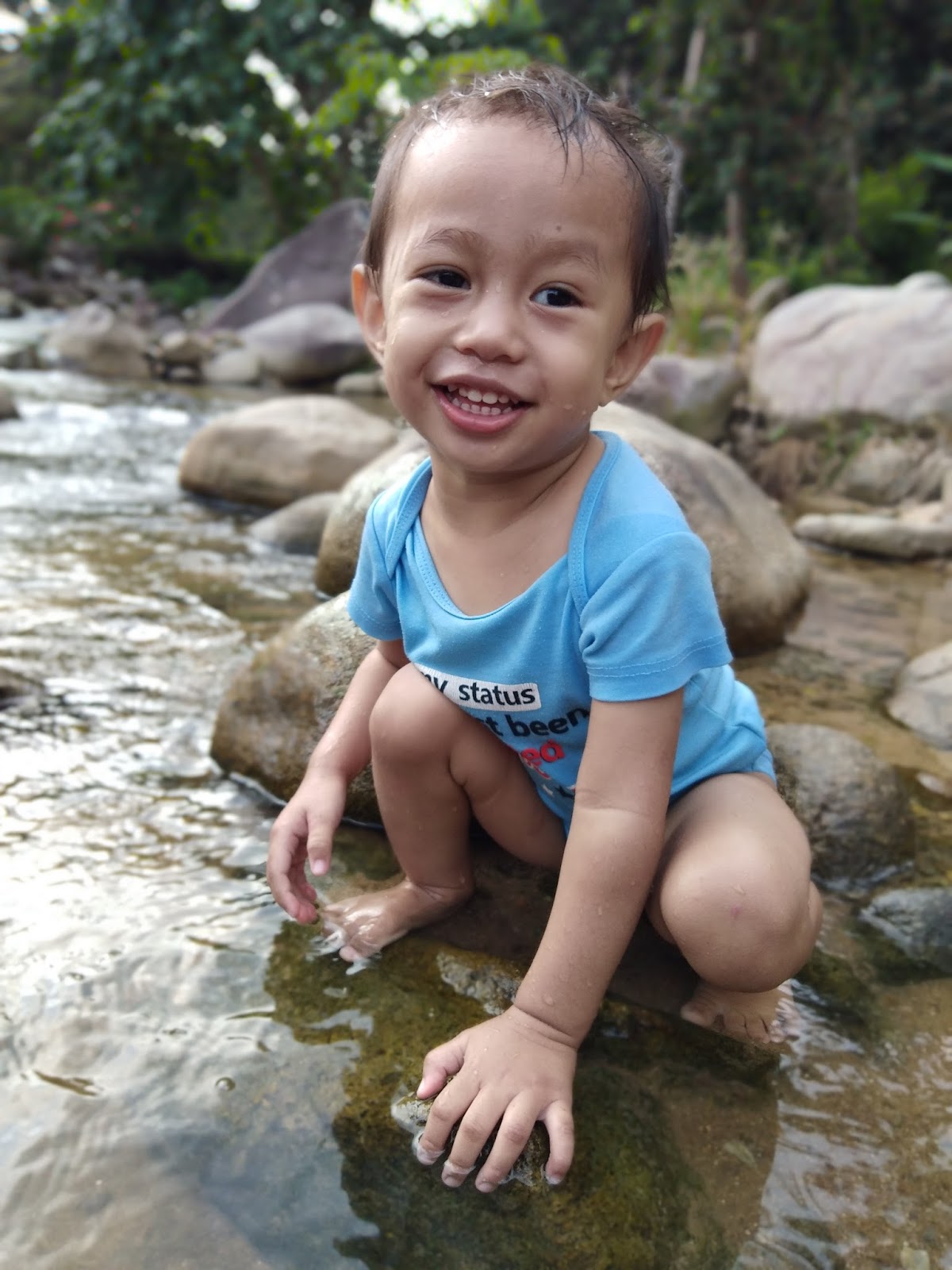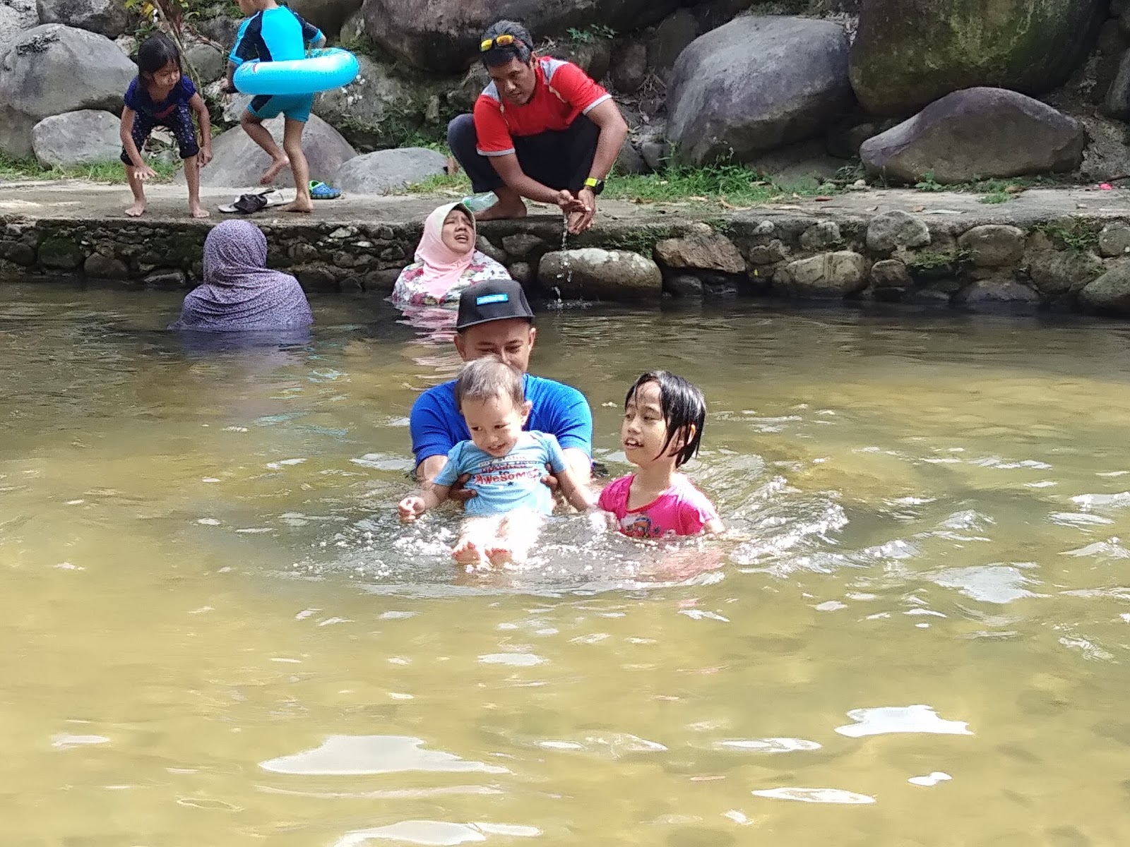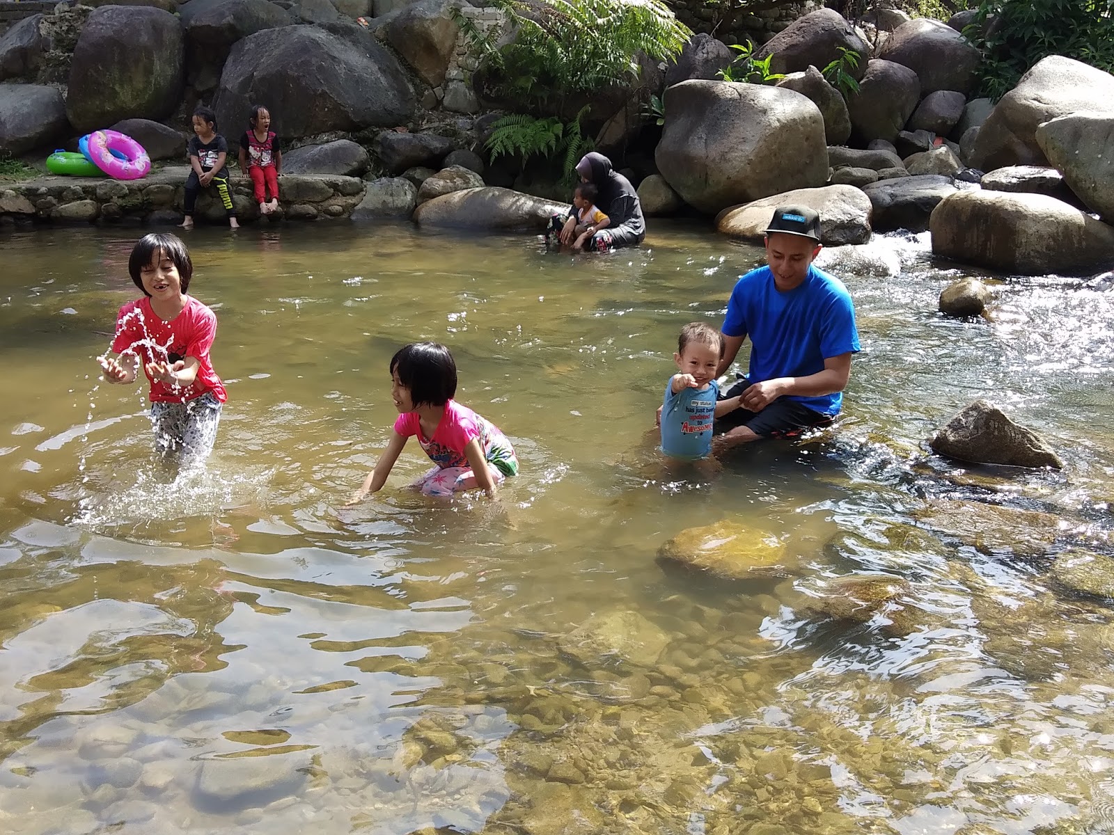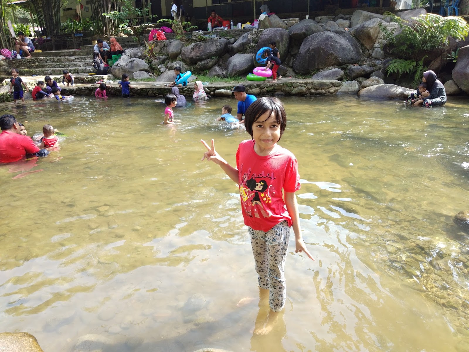 Walaupun PERCUTIAN SINGKAT KE SUNGAI LOPO VILLAGE HULU LANGAT ni memang unplanning tapi tetap bagi keseronokan pada anak anak. Air sungainya jernih dan memang sesuai untuk kanak kanak mandi juga. Air sungai ni terbahagi kepada tiga bahagian tau korang. Ada bahagian cetek, sederhana cetek dan dalam. Kalau dalam tu paras pinggang dewasa juga. So, tak perlu risau keselamatan anak anak. Diorang boleh mandi di kawasan cetek.