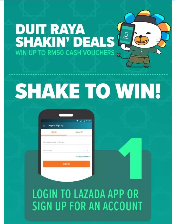 | Login akaun. Kekal berada di Laman Utama Lazada dan siap sedia untuk shake shake handphone korang |