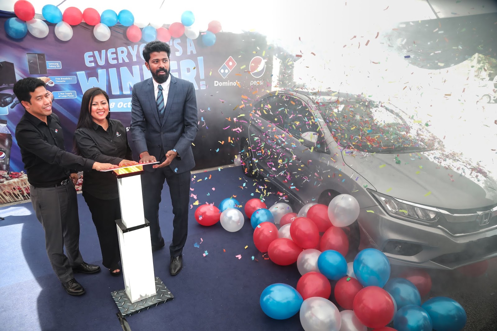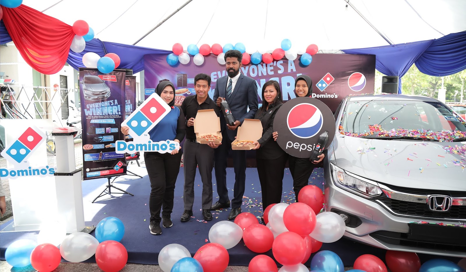Berpegang pada janjinya untuk terus mempertingkatkan pengalaman buat pelanggannya, Domino’s Pizza telah melancarkan peraduan yang dinamakan sebagai Setiap Orang Adalah Pemenang, ‘Everyone’s A Winner’, yang dicipta khas untuk pencinta pizza tegar dengan hadiah-hadiah yang menakjubkan untuk dibawa pulang. Hadiah utama merupakan sebuah kereta baharu, Honda City bernilai RM80,000. Selain itu, terdapat sejumlah hadiah bernilai sehingga RM130,000 untuk direbut. Antara hadiah lain adalah tiga buah Samsung Galaxy S9, 10 unit Logitech G560 Speakers Gaming, 20 unit Samsung Gear VR berserta Alat Kawalan, 50 baucer pizza Domino’s bersaiz besar berserta Breadstix / Cinnastix percuma tanpa had dengan pembelian minimum, sah selama 2 minggu. Peraduan ini akan bermula pada 8 Oktober hingga 4 November 2018 dan dengan setiap pembelian Domino's Bold Combos, pelanggan akan layak menyertai peraduan ini.