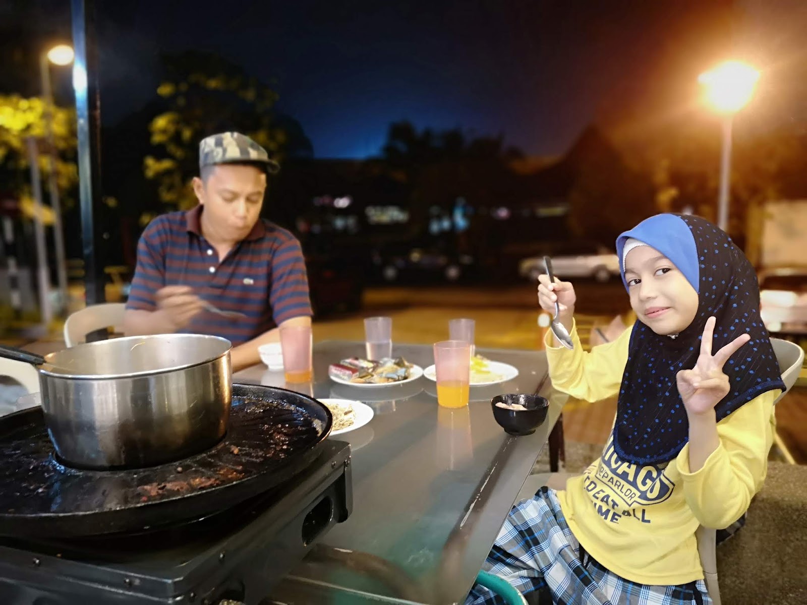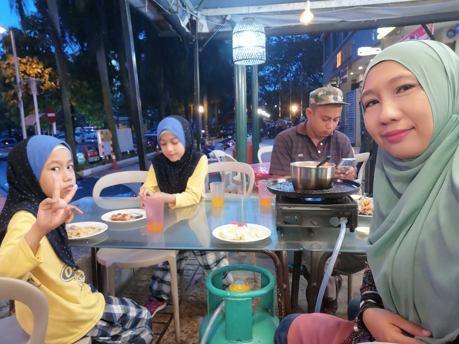 Mimi dan keluarga sampai pun lebih kurang pukul 6.30 petang. Bayangkan dari Seremban ke Shah Alam semata mata nak makan steamboat dan BBQ di D'KAYANGAN STEAMBOAT BBQ BUFFET SHAH ALAM. Kami bajet masa lebih kurang pukul 6.00 petang sampai tapi kebetulan hari yang sama berlangsung perlawanan bola sepak antara Perak dan Terengganu di Stadium Shah Alam. Apa lagi, memang jalan jammed lah kan. Tapi akhirnya kami selamat sampai di D'KAYANGAN STEAMBOAT BBQ BUFFET. Sampai saja, kami decide duduk luar. Sambil makan sambil tengok pemandangan gitu.