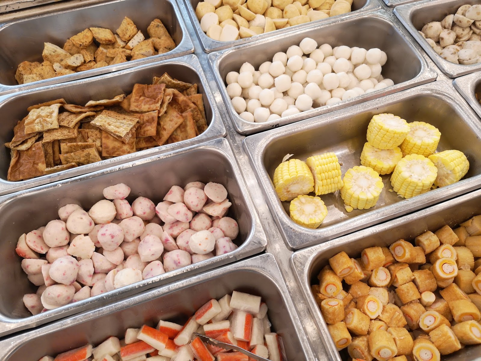 | Aneka jenis bebola, jagung, isi ketam, fucuk |
