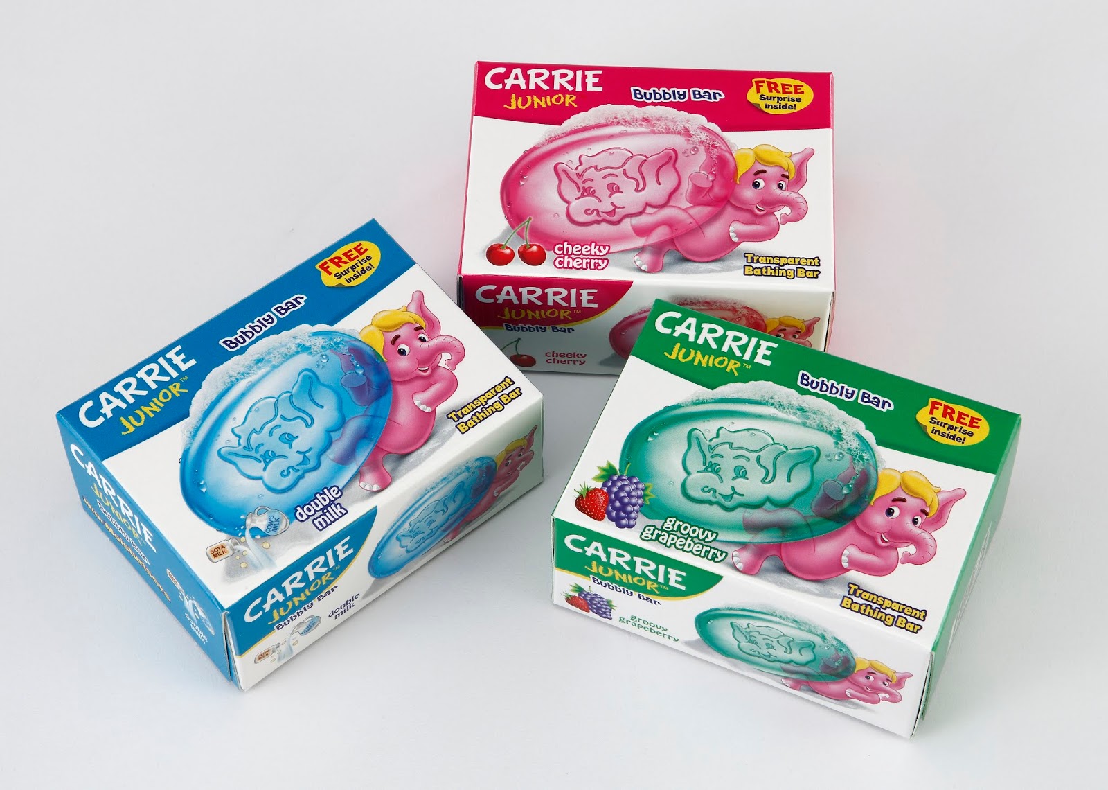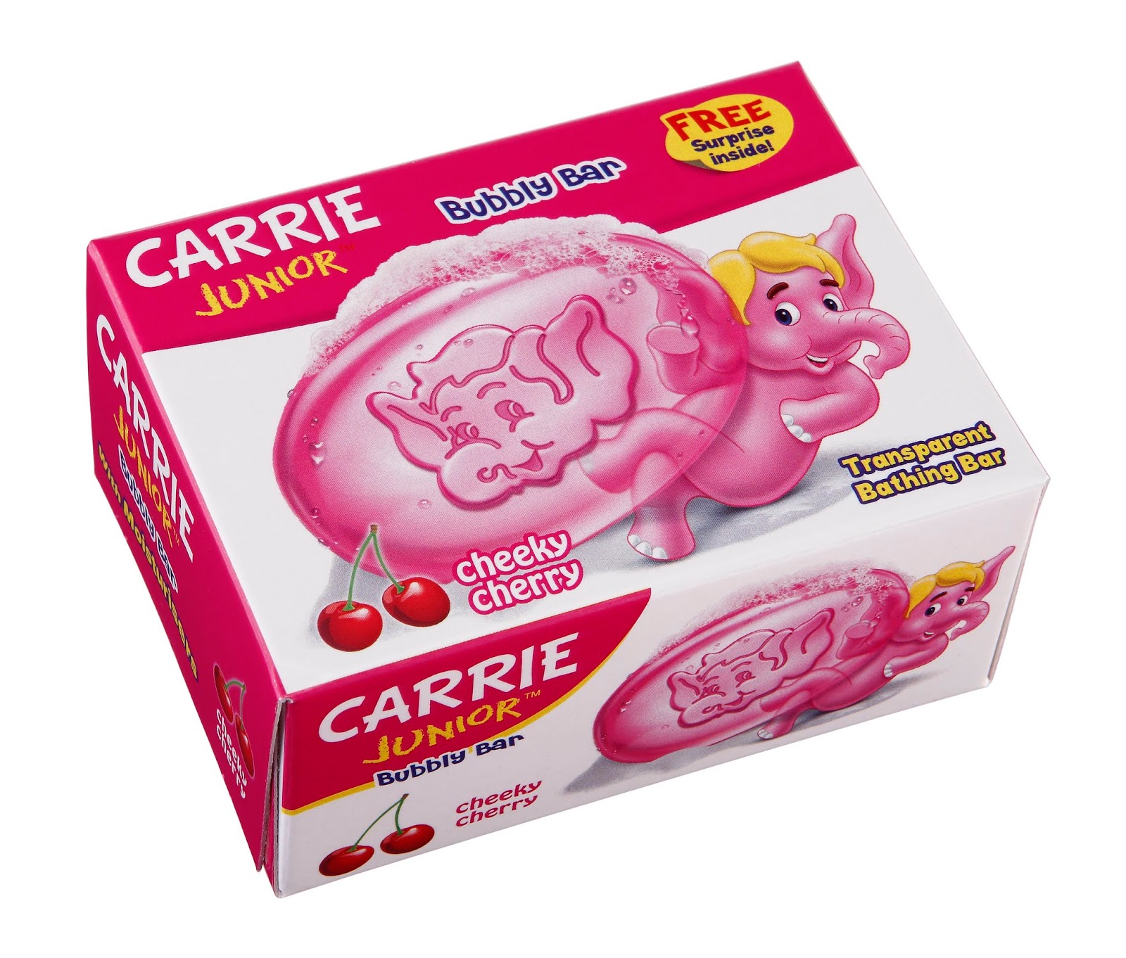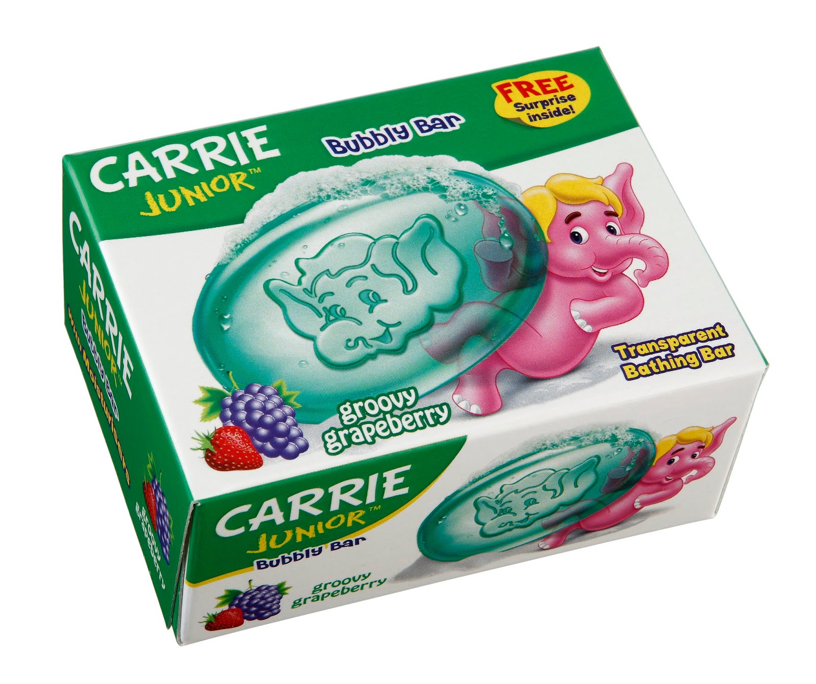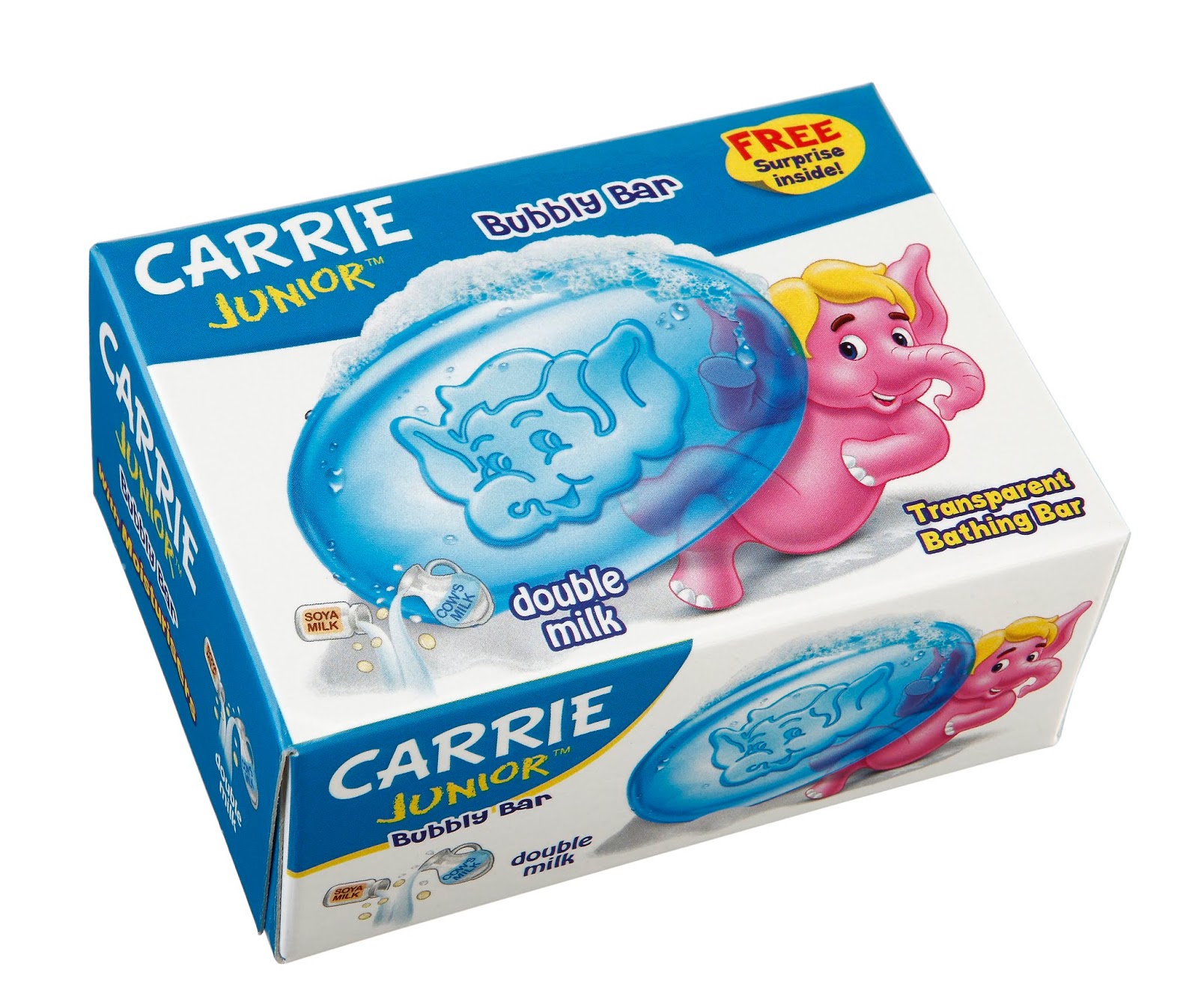 Kini kanak-kanak boleh menikmati lebih keseronokan di dalam bilik mandi kerana CARRIE JUNIOR Bubbly Bar turut hadir dengan mainan rahsia di dalam setiap kotak. CARRIE JUNIOR Bubbly Bar boleh didapati di kedai runcit utama, pasar raya, pasar besar di seluruh negara; sabun buku seberat 100gm ini berharga RM4.00 (Semenanjung Malaysia) dan RM4.20 (di Sabah Sarawak) setiap satu.