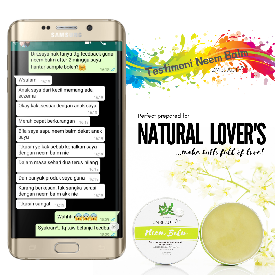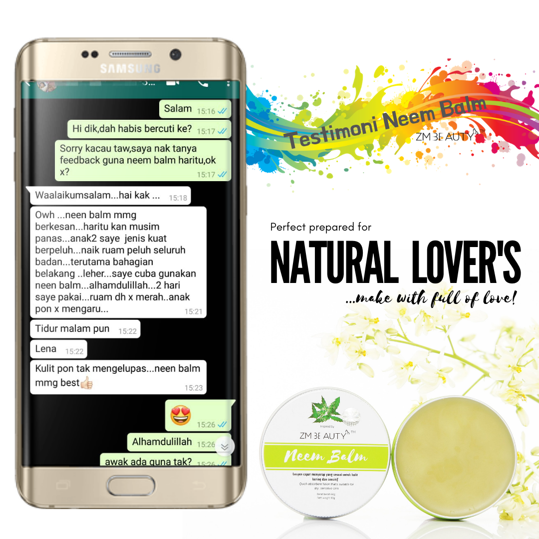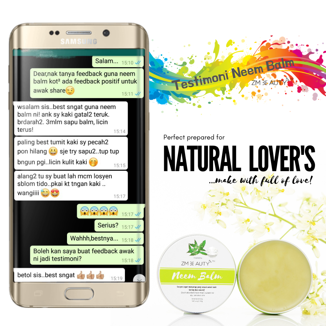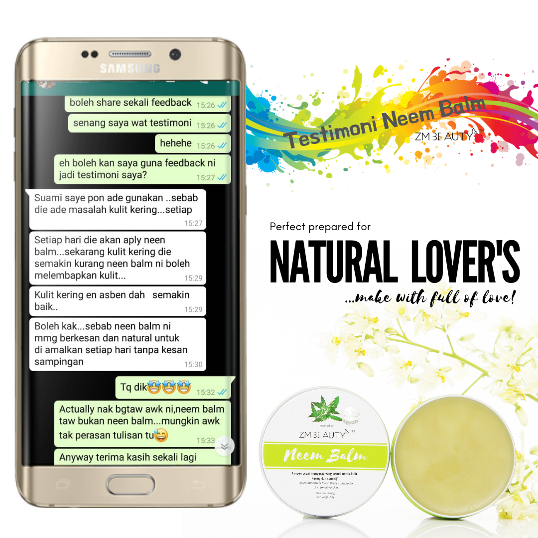 Korang boleh lihat sendiri testimoni pengguna Neem Balm. Ramai berpuashati dengan kesan menggunakan Neem Balm.